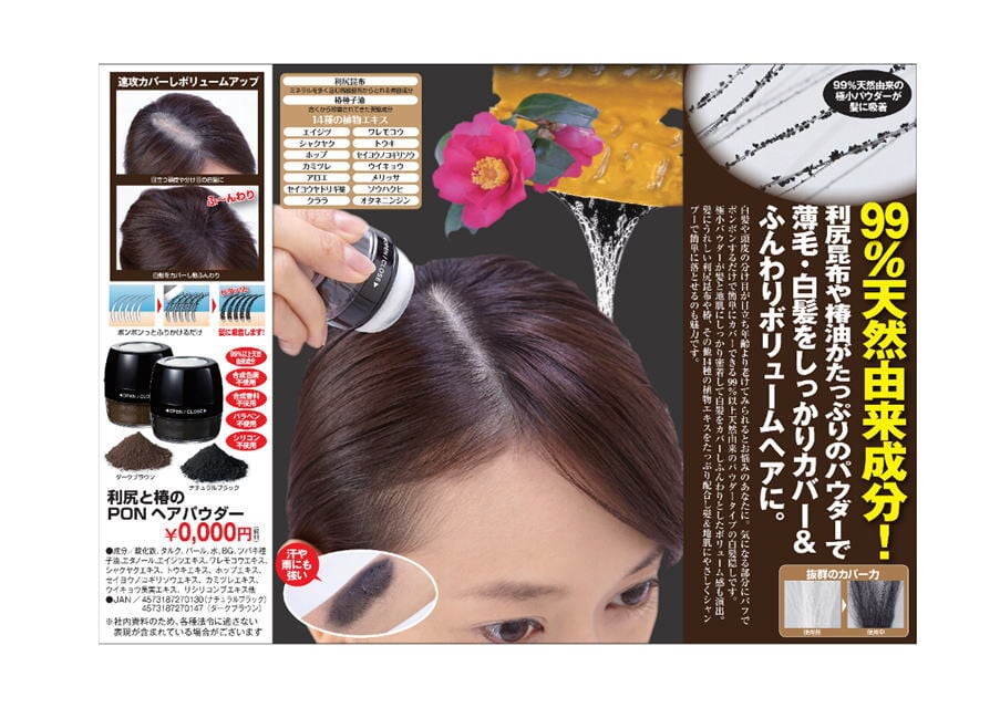 99%天然由来成分!速攻カバーしボリュームアップ、目立つ頭皮や分け目の白髪をカバーしふんわり!気になる部分にパフでポンポンするだけで簡単にカバー!